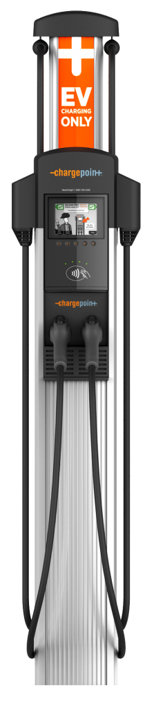 ChargePoint’s CT4000 will efficiently EVs with industry-standard SAE J1772™ Level 2 charging ports. The locking holsters provide security and reassurance that charging cables will not be pulled or removed from the charging station unnecessarily, thereby minimizing the risk of damage. Likewise, the EV owner does not need to worry that the charging cable will be disengaged during the charging session.